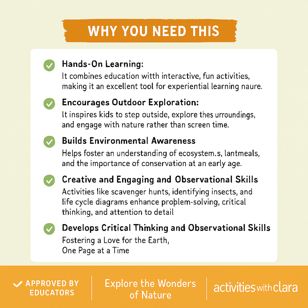 • 🌲 Nature Scavenger Hunts – fun quests to explore plants, animals, and insects